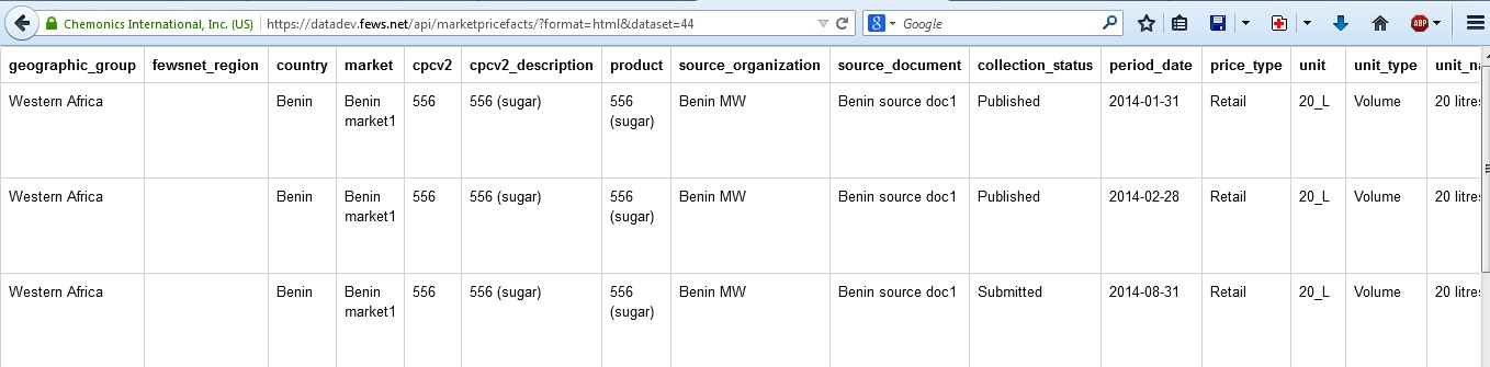 The Data Warehouse has features for analysing trends across markets and commodities using Data Sets. After adding and saving the Data set, a screen will appear with an interactive chart that allows you to view the prices for a commodity in multiple markets over time. You can also browse the data online using a scrolling grid.