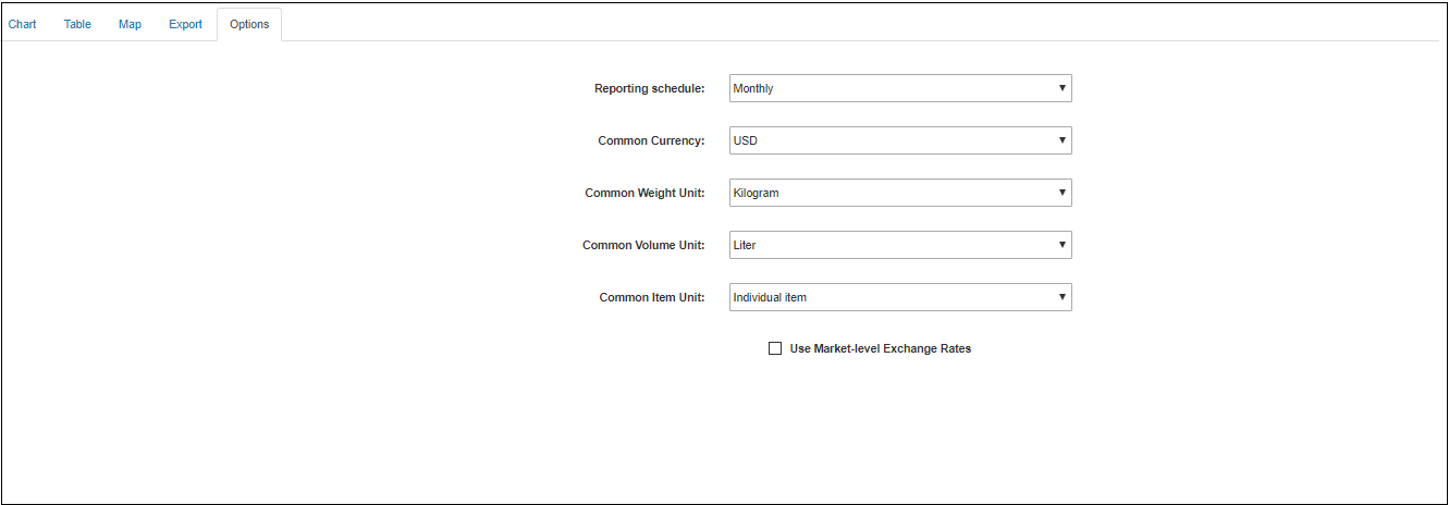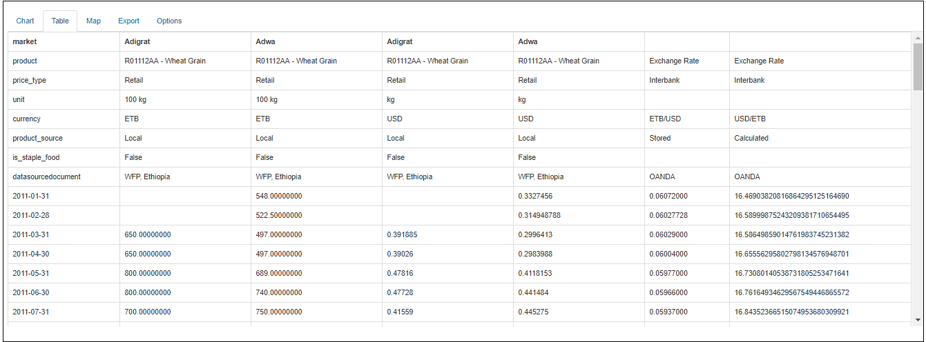One can select any of the parameters included on the options tab and click on either Chart , Table or Map formats and extract the aggregated/converted data based on the submitted criteria of the options tab.