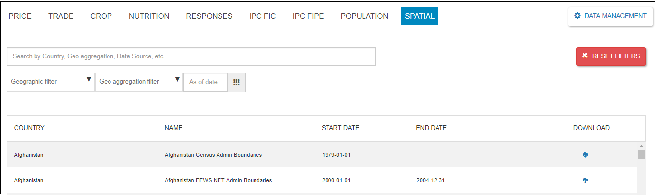 It is a data domain that deals with a spatial data. To open the data domain, click on the SPATIAL tab from the top side menu of the Data Explorer main page. The SPATIAL data domain will be opened.