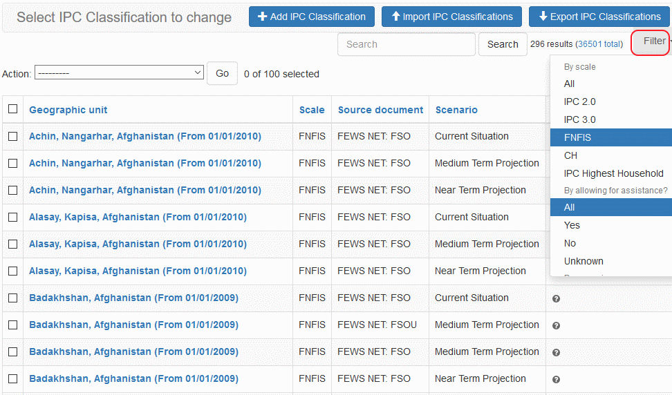 On the IPC Classifications screen, you can also search for any entries and filter By Scale and By allowing for assistance