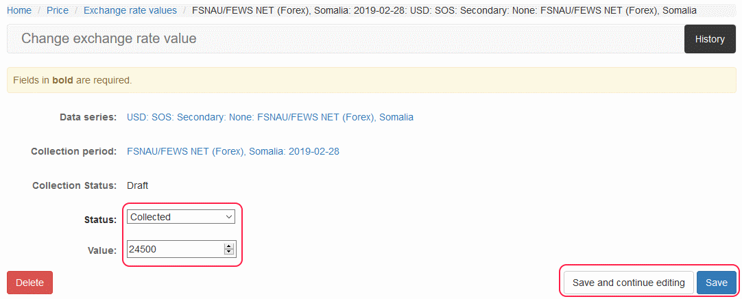 From the list in Exchange Rate Value page, click on the link within the Data series column of the record you would like to edit.