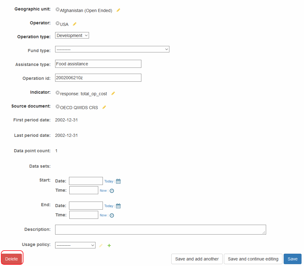 button at the bottom-left side of the page to delete the record.The system will open another page with summary information on the data you are about to delete and a prompt with a confirmation message Are you sure? and provides you with