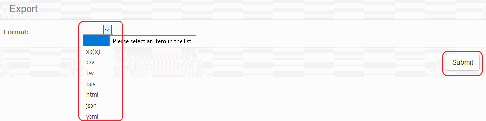 The system opens the Export page where you can specify the file format/type by selecting a value from the Format drop-down list.