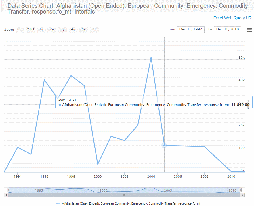 The system displays the datapoints in an Population Indicator in a flexible time-series chart format allowing you to easily see the datapoint values over a period of time.