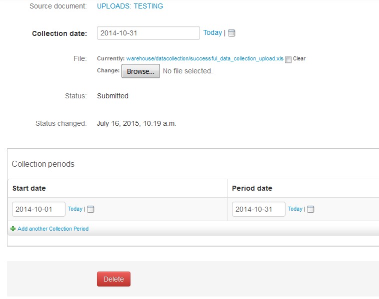 Display or edit an existing Data Collection (including Submit, Review and Publish)