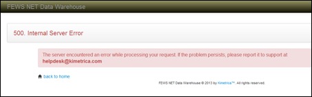 Error messages will inform the user that there was a problem processing their request and an email to report the issue has been provided.